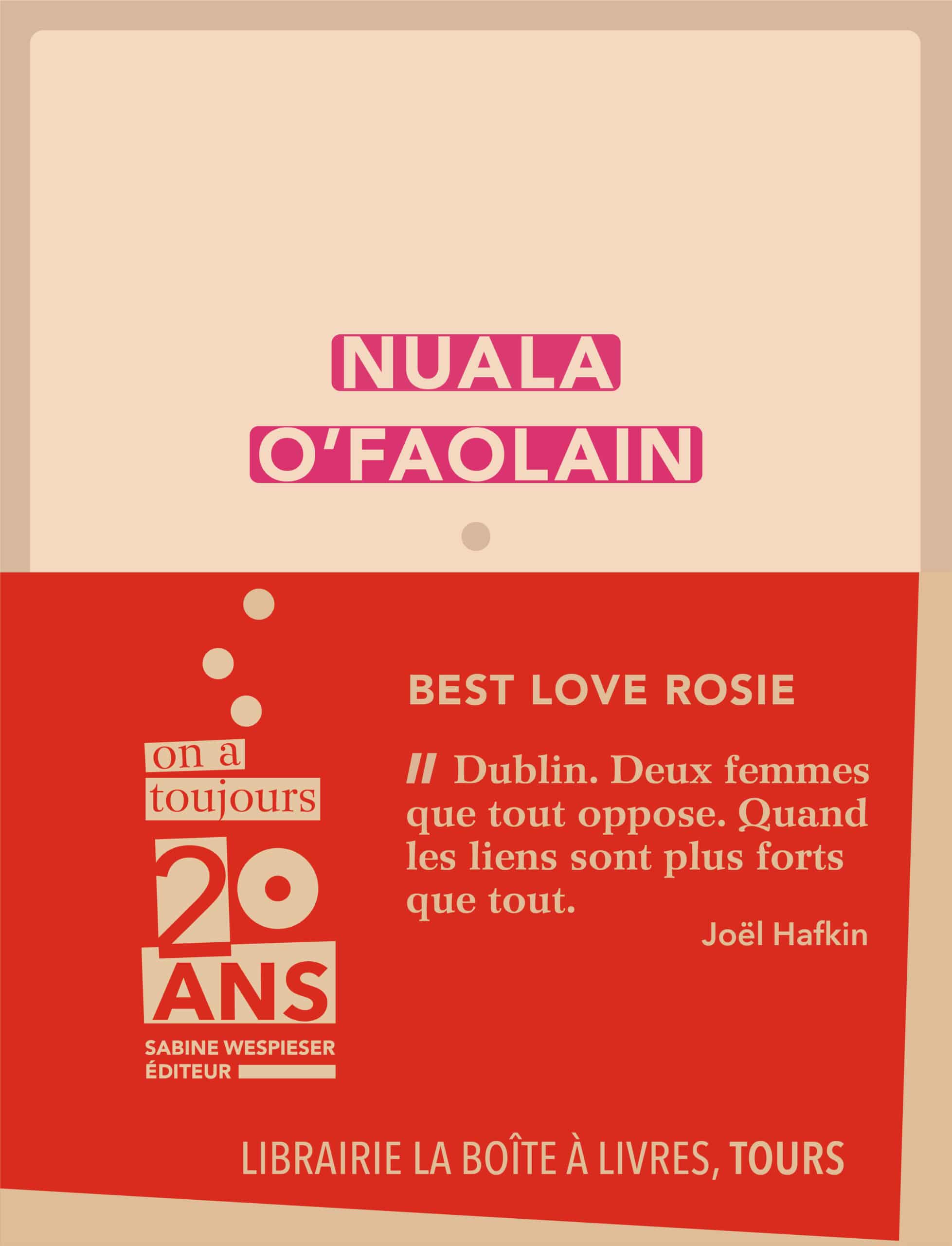 Partager sur : Site de la librairie Page facebook Page InstagramLIBRAIRIE LA BOÎTE À LIVRES, TOURS Best Love Rosie Nuala O'FAOLAIN « Dublin. Deux femmes que tout oppose. Quand les liens sont plus forts que tout. » Joël Hafkin