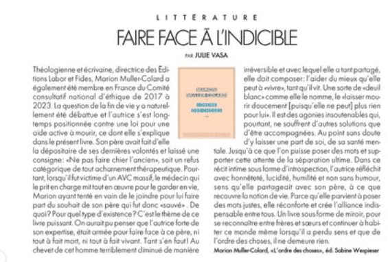 L’Ordre des Choses de Marion Muller-Colard, Julie Vasa, ELLE Suisse, 28 novembre 2025