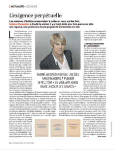 Un grand merci à Olivier Cariguel pour cette pleine page sur Sabine Wespieser et la maison dans le numéro d’octobre de Lire Magazine !