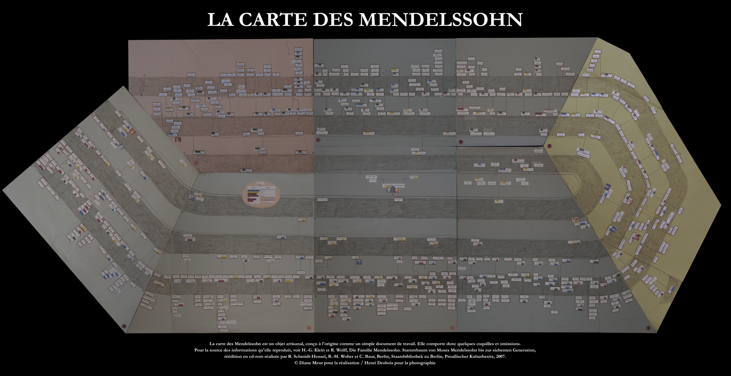 Happée par son sujet, l’auteur explore cette descendance, la voit s’étendre au globe entier et aux métiers les plus divers, jusqu’à une ursuline belge, des officiers de la Wehrmacht, un planteur de thé à Ceylan. Même quand on est, comme elle, rompue aux sagas familiales d’envergure, impossible de tenir en main cette structure : l’arbre généalogique se transforme en carte, La Carte des Mendelssohn, qui envahit d’abord la table de son salon, puis le projet lui-même.